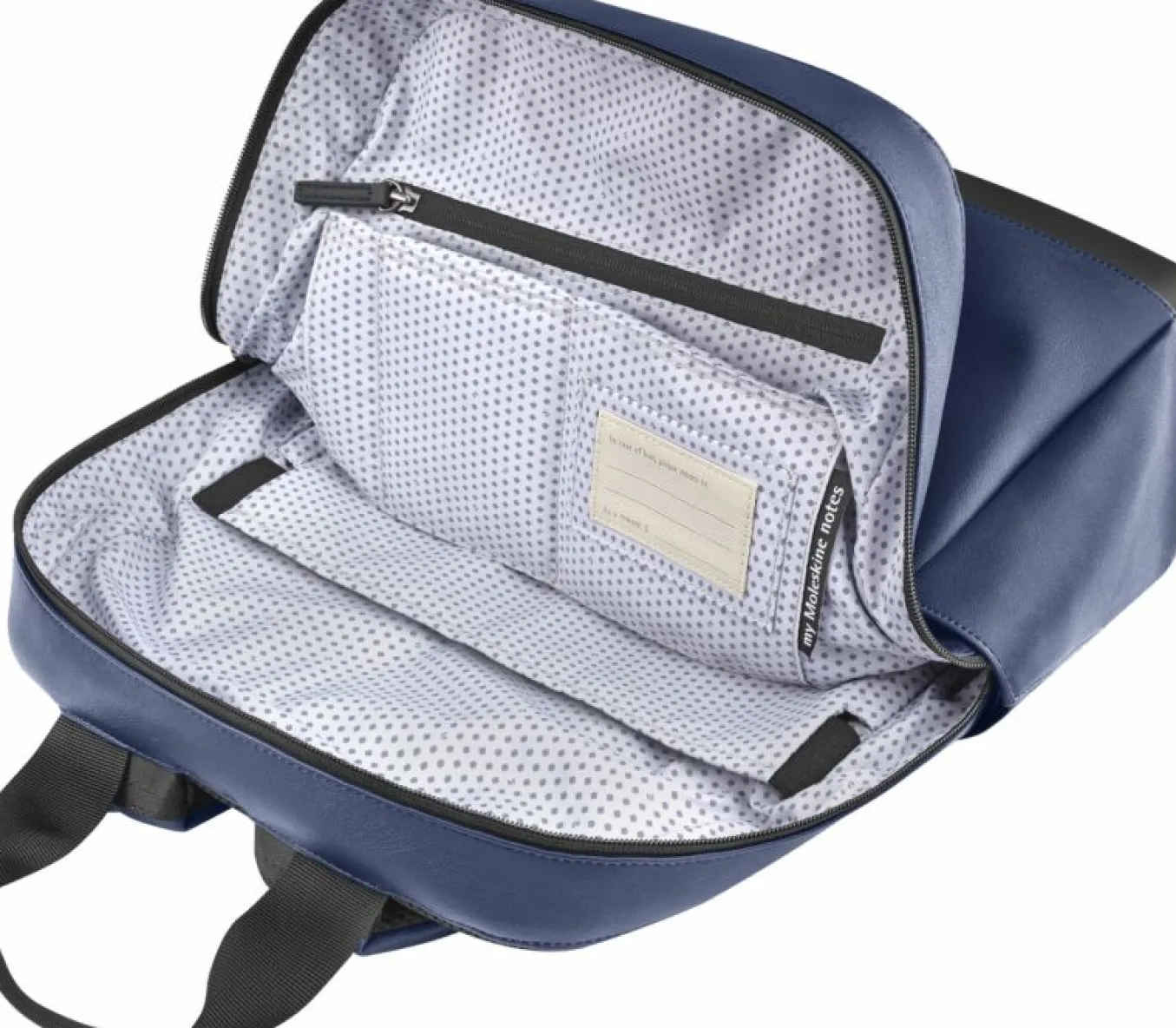 - azure lining with Moleskine pattern to better see your belongings (100% polyester)