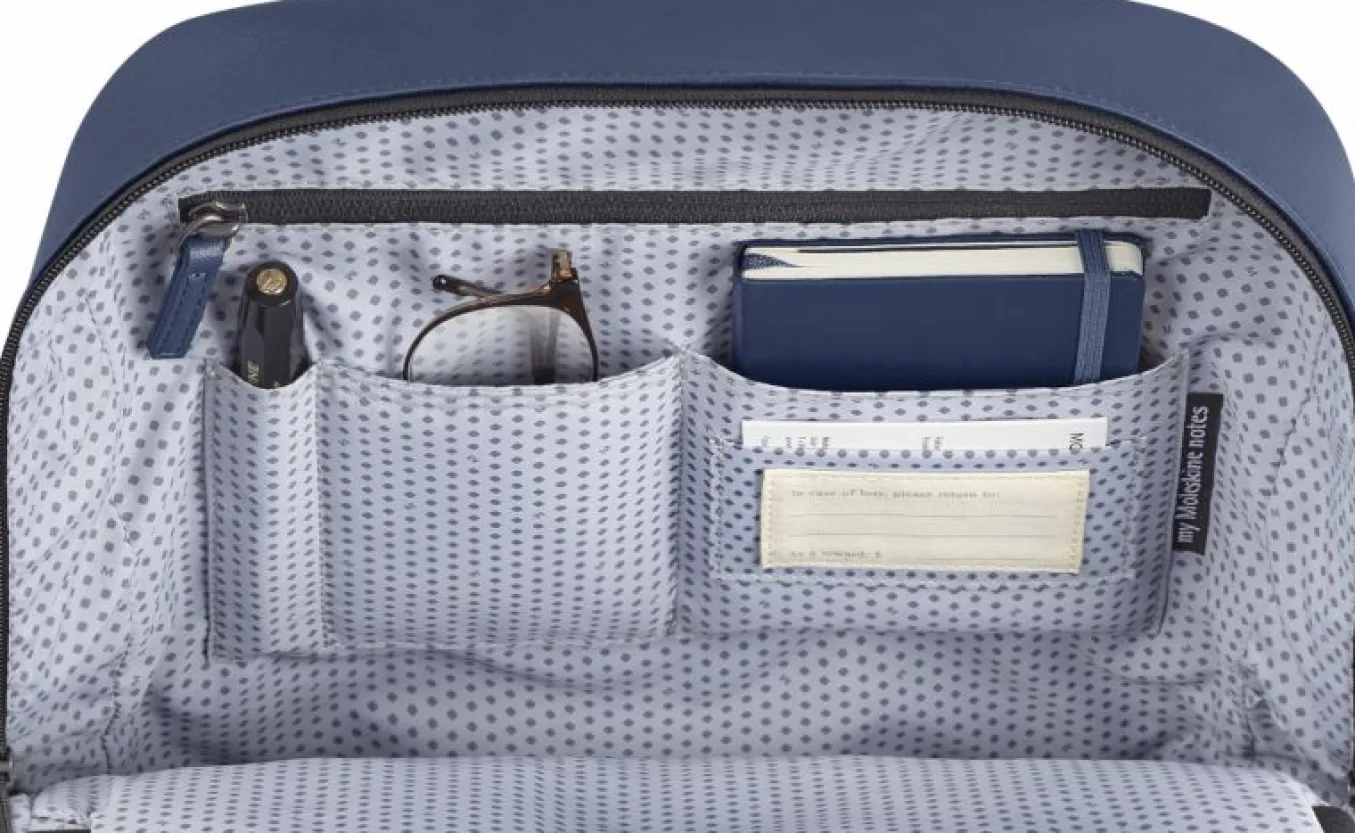 - zip pullers with a matte gunmetal finish featuring an engraved Moleskine logo and debossed monogram logo on front