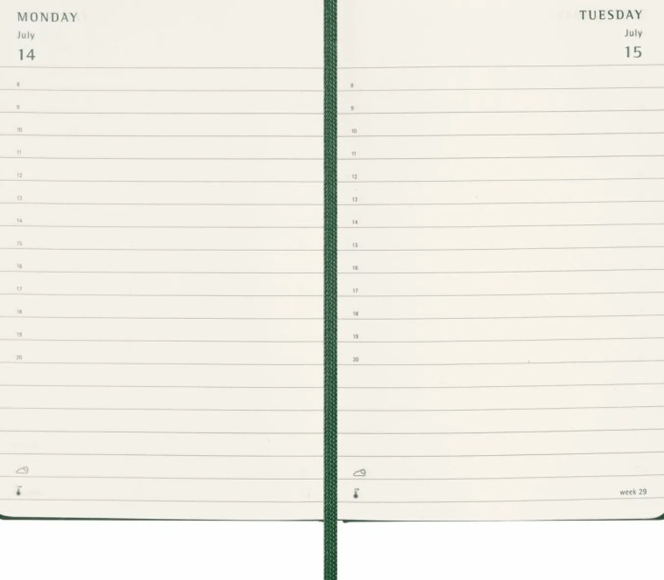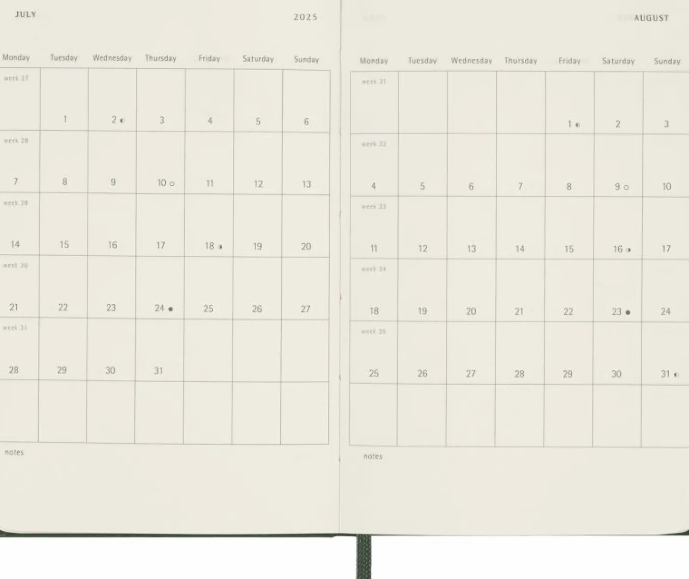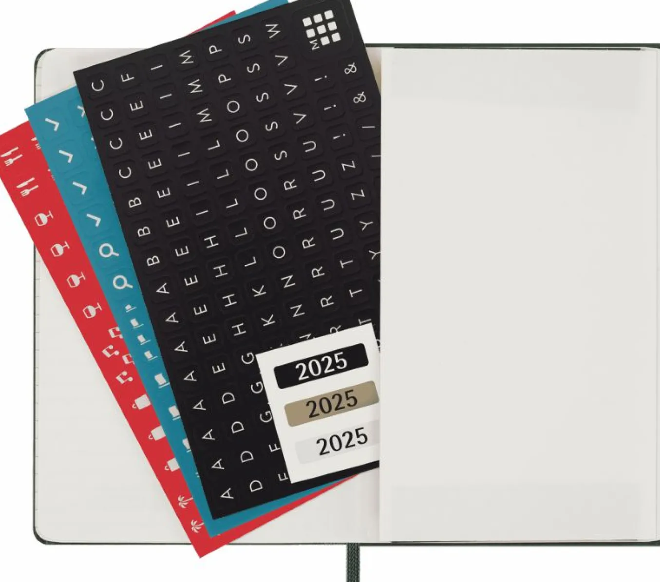 - Useful tools: calendar, travel planning, ideas and goals, ruled pages for notes