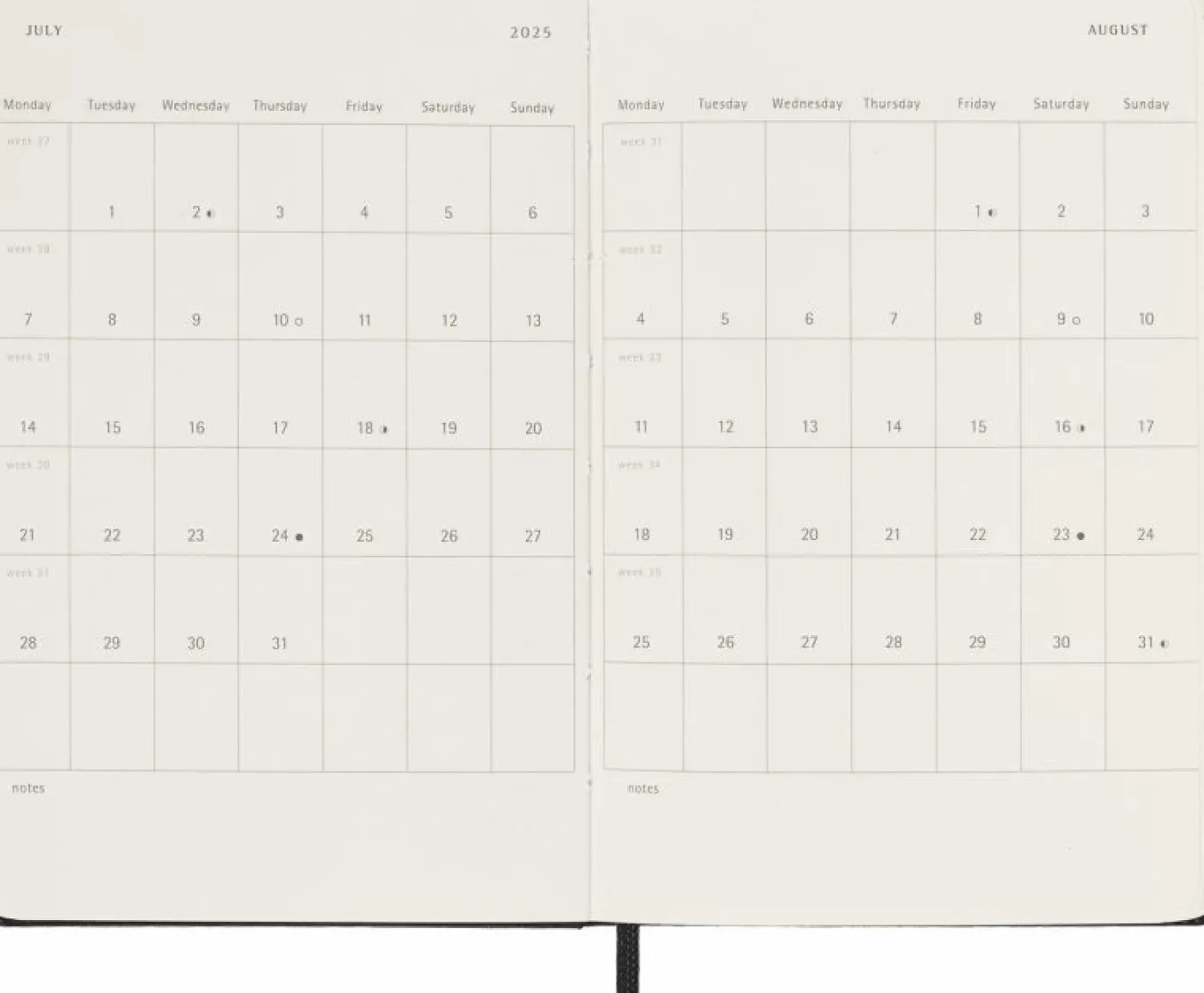 Choose between two different layouts to stay organised throughout 2025: Weekly Notebook and Weekly Horizontal. Weekly Notebook Planners show the days of each week on one side opposite a ruled page for tasks and notes, while the Weekly Horizonal layout displays the days of the week across two pages.
