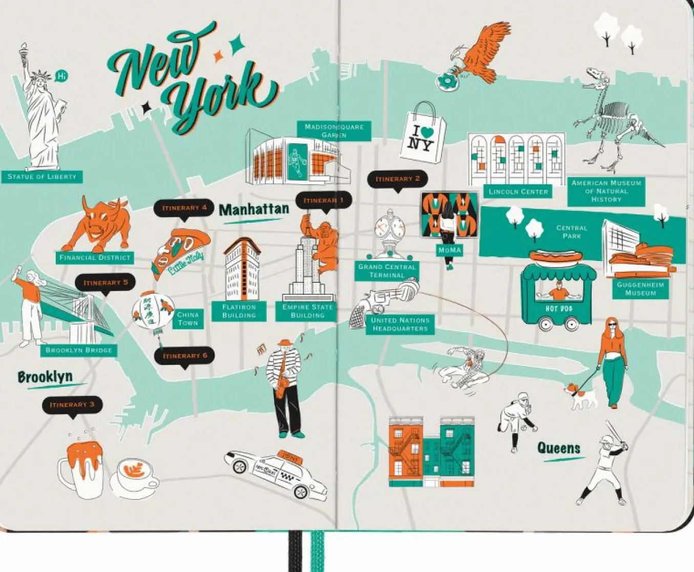 - fold-out insert with key addresses, including hightlighted Moleskine picks