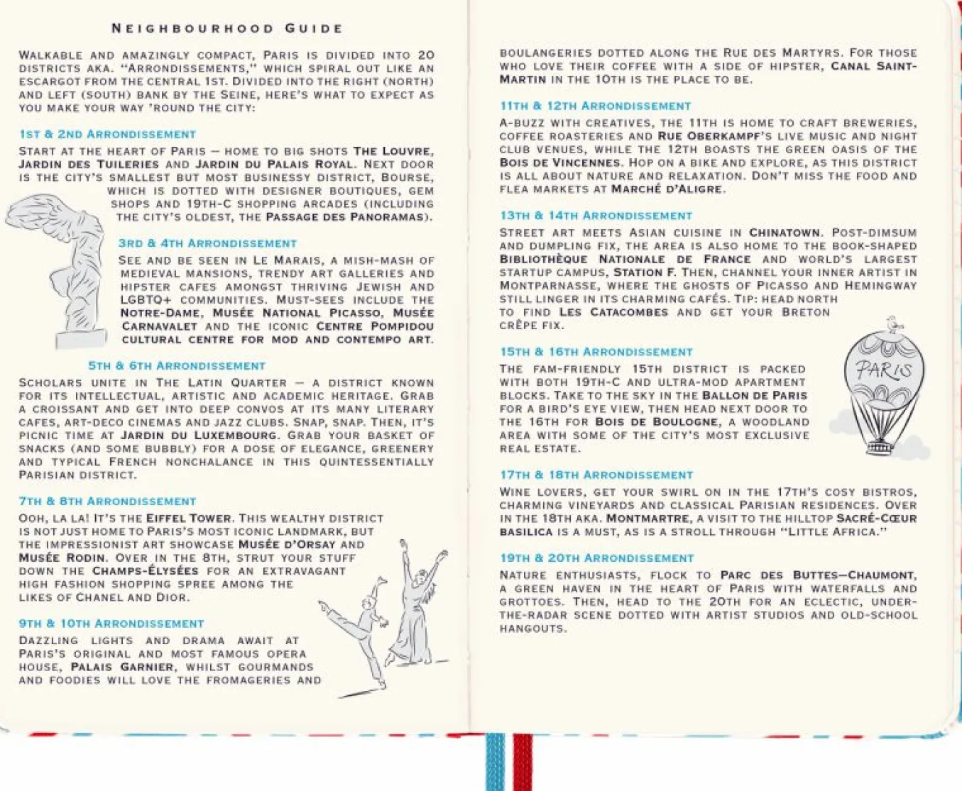 The canvas cover of this Paris travel guide draws inspiration from classic French motifs: Breton stripes form a heart-shaped homage to the City of Love.