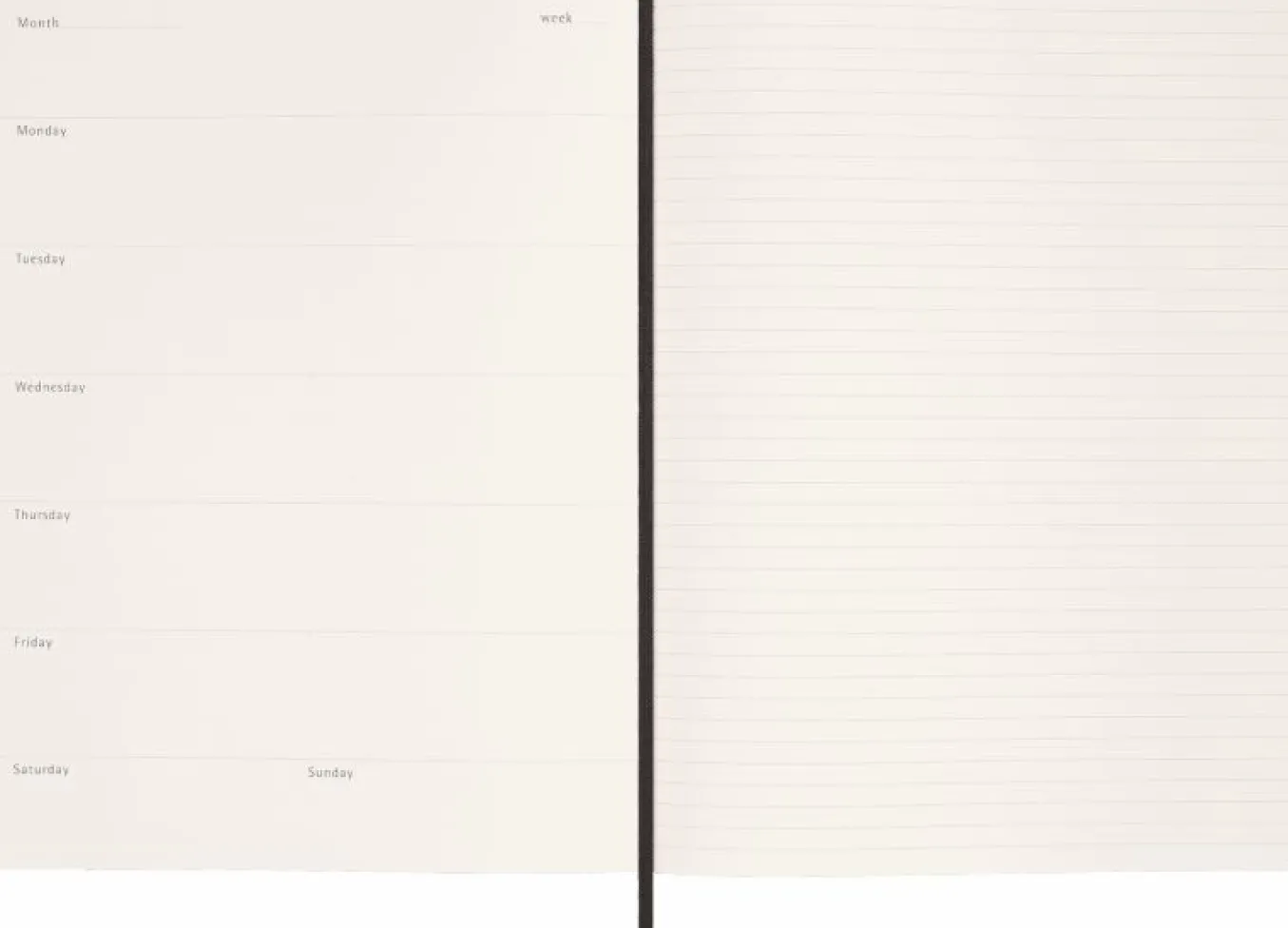 The Shine Undated Planner is structured to document all your engagements, reminders and to-dos. Throughout its pages, the month, week and date spaces are left blank for you to complete as you go, providing more versatility and freedom than a dated organiser. By writing the dates manually, you can skip any spaces and only use the months you need. An undated planner can be started whenever suits you – you don’t have to wait for the start of the calendar year. You can start planning around the academic year or adapt it to your personal or work needs. It has twelve month sections, each one including five undated weeks. This Shine Planner has a weekly notebook layout, which means each week also has a ruled page for notes and tasks alongside your appointments. This flexible layout merges notebook and planner to give you the best of both worlds.