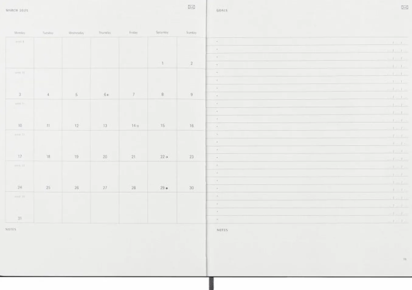 Dated from January to December 2025, the Smart Planner PRO is formatted to show each week’s appointments vertically across 2 pages, while its XL size makes room for all your plans. The opening pages feature to-do lists and sections dedicated to annual goals, monthly activities and weekly projects – helping you to stay up-to-date on paper, on screen and on the move.