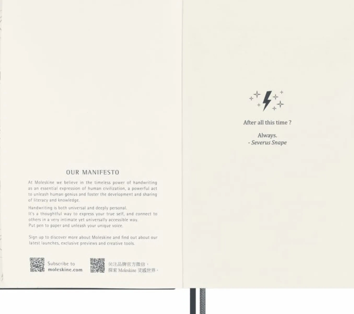 Pour positive thoughts onto each page to ward your notebook with your own magical creativity. This Harry Potter Limited Edition features cover graphics that glow in the dark, a quote printed within, and two bookmark ribbons track your ideas, projects and notes. Flick through the ivory-coloured pages to find the patronuses hidden inside and use your favourite pen to practice the wand gestures printed on the endpapers.