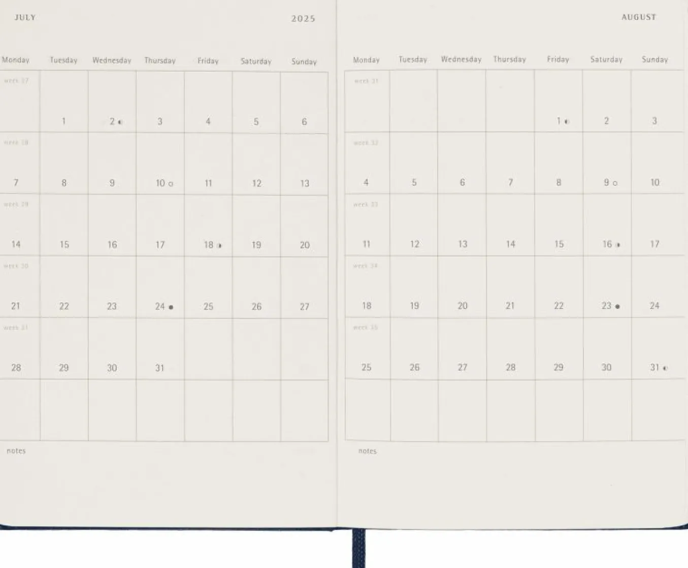 Dated from July 2024 to December 2025, our 18-Month Weekly Planners let you see the whole week at a glance, while also providing yearly and monthly snapshot pages for a broader overview of the year. These are followed by pages for travel planning, ideas and goals.