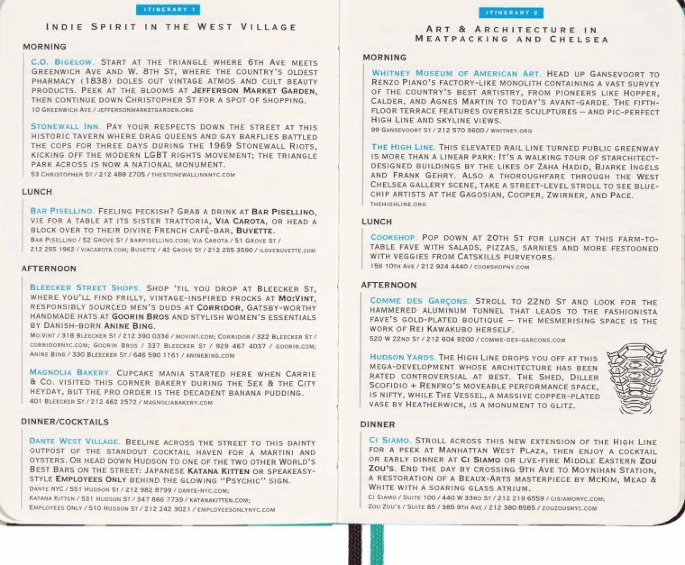 - fold-out insert with key addresses, including hightlighted Moleskine picks