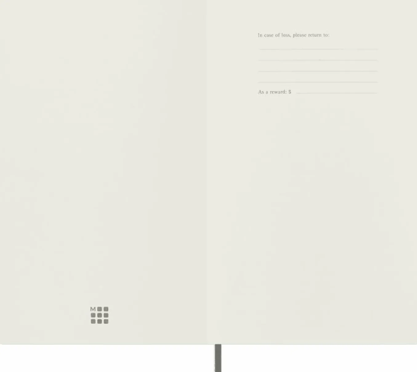 The ivory-coloured pages within are made using high-quality 100g/m² paper. The notebook features all the elements that one expects from Moleskine: rounded corners, an expandable pocket to store loose notes, an elastic closure to secure your ideas and a bookmark ribbon. Add a personal touch by personalising the ‘In case of loss’ notice inside the front cover and then fill the pages over time with notes, thoughts, tasks, reminders, projects and plans. Keep it natural by exploring ideas in the most instinctive way possible: by hand on paper.