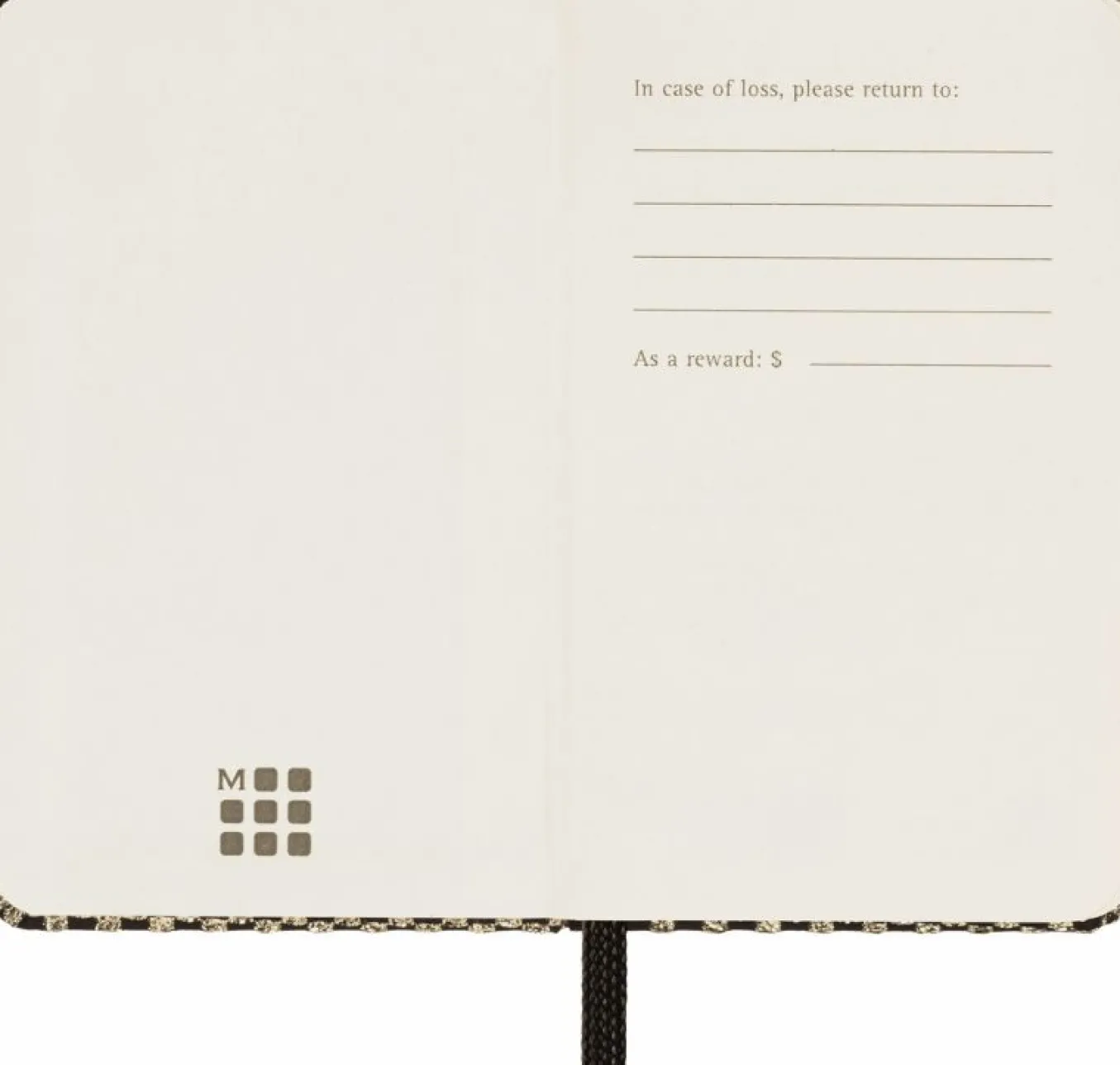 - ‘In case of loss’ printed on the flyleaf